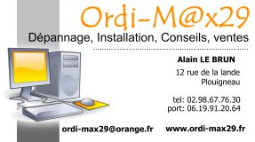 ORDI-M@X29, dépanne à domicile les ordinateurs des particuliers et des professionnels sur toute la région de Morlaix. Après 15 ans dans le millieu informatique militaire, nous avons décidé de créer notre entreprise pour vous faire profiter de notre savoir faire et mettre en pratique nos connaissances.